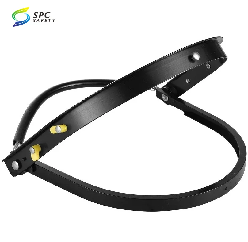 SPC Safety Headgear Face Shield with Adjustable Ratchet Suspension is designed with a clear polycarbonate face shield that meets ANSI Z87.1 standard without obstructing your field of vision. The headgear is fully adjustable for the perfect fit with a 5-position crown strap and ratchet adjustment knob on the back. Pre-installed with a replaceable sweatband for ultimate comfort and moisture absorption. The flexible polycarbonate shield comes with a removable protective film over the polycarbonate to protect it from scratching during shipping and needs to be removed before use for the optimal clear vision. The high-strength thermoplastic crown is built to last and the shield attachment mechanisms allow for quick and easy replacement or exchange of the face shield within seconds. A shield doesn't have to be damaged or broken to be replaced, you can also change or replace shields simply for sanitization for PPE.
